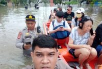 Tangerang – Satuan Samapta Polres Metro Tangerang Kota melaksanakan evakuasi warga masyarakat yang terdampak banjir di Perumahan Duta Bandara Permai, Kecamatan Kosambi, Kabupaten Tangerang,…