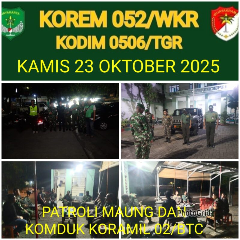 “Kegiatan ini bertujuan untuk menciptakan dan menjaga situasi yang aman dan kondusif di wilayah Kota Tangerang, khususnya di wilayah binaan Koramil 02/Batuceper. Melalui patroli ini, kami ingin menunjukkan bahwa negara hadir bersama rakyat, menjaga ketertiban dan keamanan secara bersama-sama,” ujarnya.