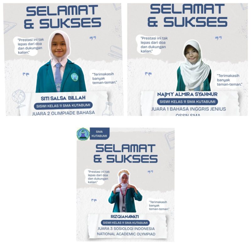 “Saya sangat bangga melihat ke-3 siswi yang masih duduk kelas 11, yang bernama, Siti Salsa Bilah meraih Juara II Olimpiade Bahasa Inggris, Najmy Almira Syahnur Meraih Juara I Olimpiade Bahasa Inggris, dan Rizqianawati meraih Juara III olimpiade sosiologi, Dari pendaftaran online hingga proses pelaksanaan, mereka sangat bersemangat dan konsisten. Mereka juga selalu mengikuti arahan saya sebagai wali kelas, sehingga hasil yang mereka dapatkan benar-benar sepadan dengan usaha yang sudah dilakukan,” ungkap Asep.